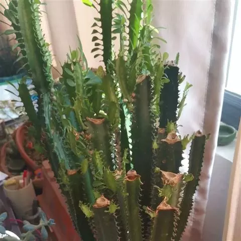 魁伟玉原产南非,是一种大戟科的多年生肉质植物,植株具粗圆筒形肉质茎,有10条以上的突出棱,…