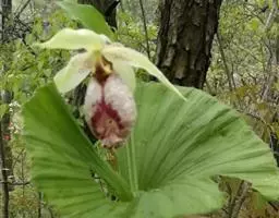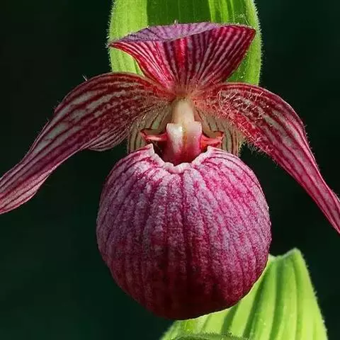 大花杓兰因其形状酷似一个口小肚大的囊袋,又名“大口袋兰”。花体呈紫红色,花朵直径5厘米至6厘米,…