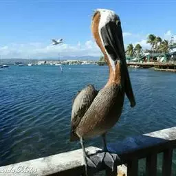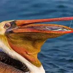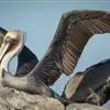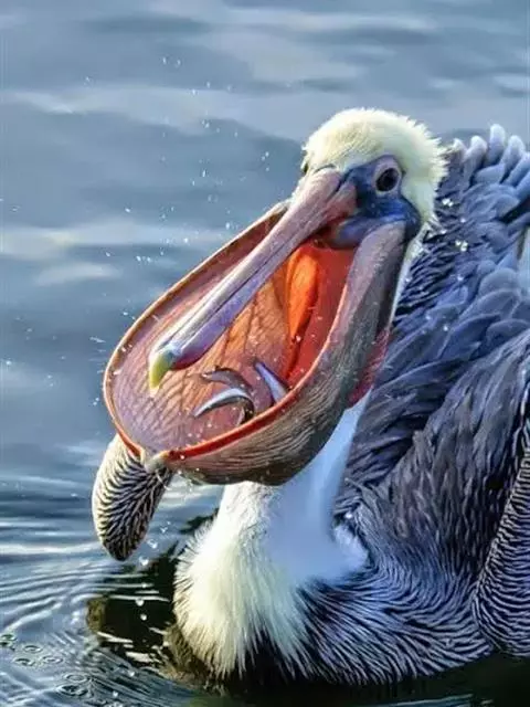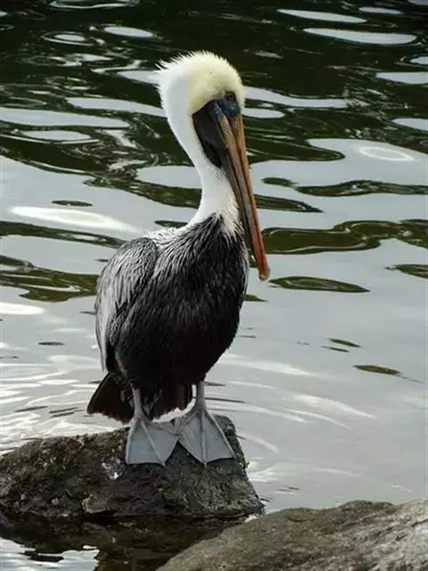 褐鹈鹕:是鹈鹕家族中体型最小的成员。体型粗大,体重6.5-9千克。嘴形宽大直长,上嘴尖端朝下弯曲,…
