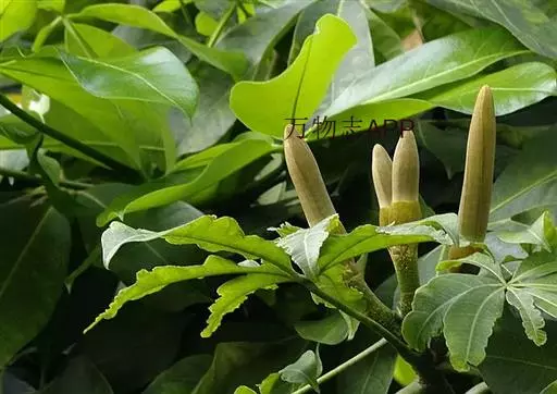 水瓜栗,木棉科瓜栗属,常绿乔木。原分布于南美东北部的巴西、圭亚那、委内瑞拉等地的热带雨林地区,是当地的河岸林或沼泽森的组成树种之一。在丰亚那的河岸林靠水的一侧。常自然形成带状的单种优势群落。华南植物园于1978年考察美洲时,作为异地种质资源首次引入我国。据初步观察,其外部形态和生长适应性等,都很适宜在我国亚热带南部地区作庭园绿化观赏方面应用。