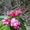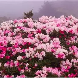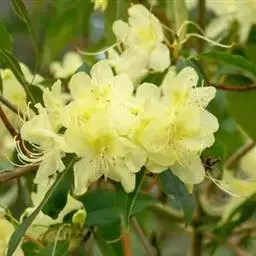 烈香杜鹃(学名:Rhododendron anthopogonoides Maxim.):常绿灌木,高可达2米,枝条粗壮而坚挺,叶芳香,革质,上面蓝绿色,无光泽,下面黄褐色或灰褐色,叶柄被疏鳞片,花序头状顶生,有花10-20朵,花密集,花萼发达,淡黄红色或淡绿色,花冠狭筒状漏斗形,淡黄绿或绿白色,罕粉色,有浓烈的芳香,花柱短,约与子房等长,蒴果卵形,6-7月开花,8-9月结果。