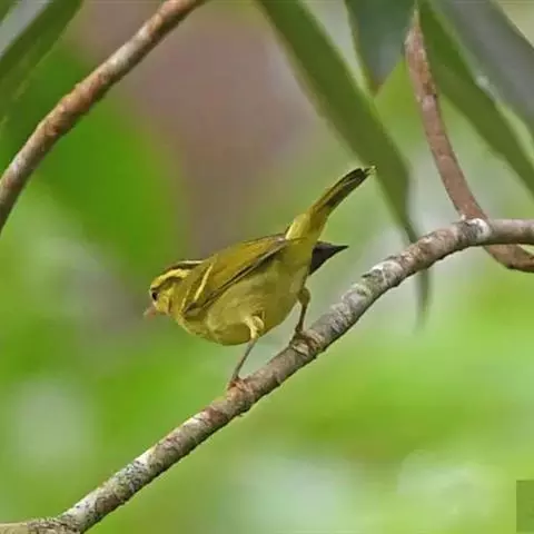 白斑尾柳莺小型鸟类,体长约10厘米。上体橄榄黄绿色,头顶中纹淡黄绿色,侧冠纹暗橄榄褐色,眉纹淡黄色,…