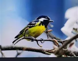 黄腹山雀是雀形目山雀科山雀属鸟类。虹膜褐色或暗褐色;嘴蓝黑色或灰蓝黑色;头、喉胸斑黑色,…