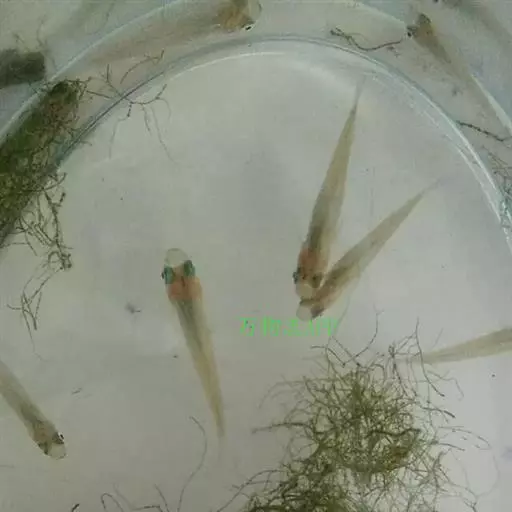 刚产出的卵粒呈浅黄色,卵呈椭网形,卵径0.55-0.57毫米×0.65-0.68毫米,经30-60分钟后卵粒吸水,受精卵卵粒饱满、晶亮,颜色较前深些。未受精的卵,卵径较小,饱满性差,透明度也差,大小不均,并明显地混浊,在游泳足上粘附力差。