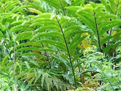 卤蕨 植株高可达2米。根状茎直立, 顶端密被褐棕色的阔披针形鳞片。叶簇生,叶柄长30-60厘米,粗可达2厘米,基部褐色,被钻状披针形鳞片,向上为枯禾秆色,光滑;上面纵沟,在中部以上沟的隆脊上有2-4对互生的、由羽片退化来的刺状突起;叶片长60-140厘米,宽30-60厘米,基数一回羽状,羽片多达30对,基部一对对生,略较其上的为短,中部的互生,长舌状披针形,长15-36厘米,宽2-2.5厘米,顶端圆而有小突尖,或凹缺而呈双耳,凹入处有微突尖,基部楔性,柄长1-1.5厘米(顶部的无柄),全缘,通常上部的羽片较小,能育。叶脉网状,两面可见。叶厚革质,干后黄绿色,光滑。孢子囊满布能育羽片下面,无盖。染色体2n=60。
