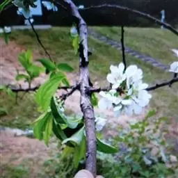 味馨一年生枝及新梢均为暗红色,主干及多年生枝灰红色,皮孔不明显,节间长1.8cm,叶柄长2.5cm,叶片呈圆形或阔卵形,浅绿色,叶长7.3cm,宽6cm,初花为粉红色,以后逐渐变为白色,花托短,花萼红色,雌蕊略高于雄蕊,授粉率高。栽植当年树干基径达到4.5cm,平均新梢基径1.5cm,单株当年新梢数28个,平均新梢长157cm,新梢停止生长期9月中旬。味馨抗性强,病虫害少,具有良好的抗倒春寒能力。
