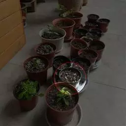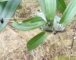 先将试管苗根部培养基洗净,然后将试管苗单株分在6cm×6cm纸钵中,上方露2~3片叶。分苗时,小心操作,防止碰伤试管苗,将分好的试管苗摆入苗床中,用细孔喷壶浇透水。苗床上方加盖遮阳网,同时四周及上方挂黄板诱杀虫子。