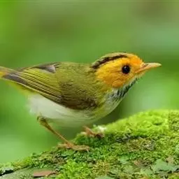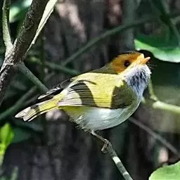 棕脸鹟莺:体长10厘米,是一种色彩亮丽而有特色的莺鸟。头栗色,具黑色侧冠纹。上体绿,腰黄色。下体白,…