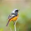 金色林鸲是鹟科、鸲属小型鸟类,体长12-15厘米。头顶至背黄橄榄绿色,眼先和头侧黑褐色,眉纹金橙黄色。…