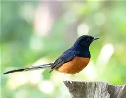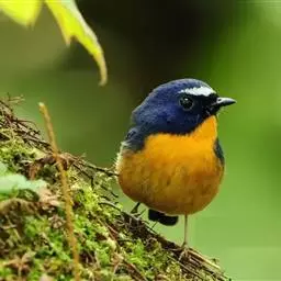 棕腹大仙鹟:体重24-28克,体长15-17厘米,是一种小型的色彩亮丽的鹟。雄鸟上体深蓝,下体棕色,…