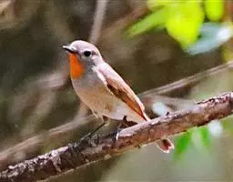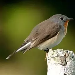 橙胸姬鹟:体长12-16厘米,是一种体型略小的林栖型鹟。尾黑而基部白,上体橄榄褐色,额具一白色横带,…