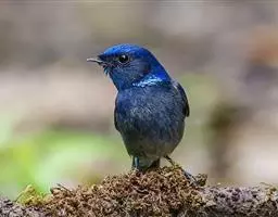 蓝大翅鸲是鹟科、大翅鸲属小型鸟类,体长19-21厘米。两翅尖长。雄鸟通体鲜紫蓝色具金属光泽。…