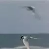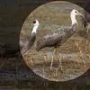 幼鸟:头顶棕黄色,颈杂有黑色和白色,背灰黄色,初级飞羽和次级飞羽为黑色,越冬后,颈上1/3灰黑色,背残留有黄褐色羽毛。