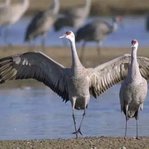 沙丘鹤别名棕鹤、加拿大鹤,是鹤形目鹤科鹤属大型涉禽。成鸟两性相似,雌鹤略小,…