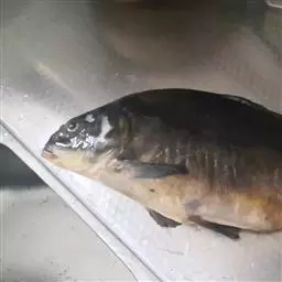 镜鲤(学名:Cyprinus carpio var. specularis ):是欧洲鲤鱼的变种,表皮有光泽,好像镜面一样光滑且光泽明显,故称呼为镜鲤。体形较粗壮,侧扁,头后背部隆起,头较小,眼较大,体表鳞片较大,沿边缘排列,背鳍前端至头部有1行完整的鳞片,背鳍两侧各有1行相对称的连续完整鳞片,各鳍基部均有鳞,个别的个体在侧线上见有少数鳞片。侧线大多较平直、不分枝,个别个体的侧线末端有较短的分枝。体色随栖息环境不同而有所变异,通常背部棕褐色,体侧和腹部浅黄色。