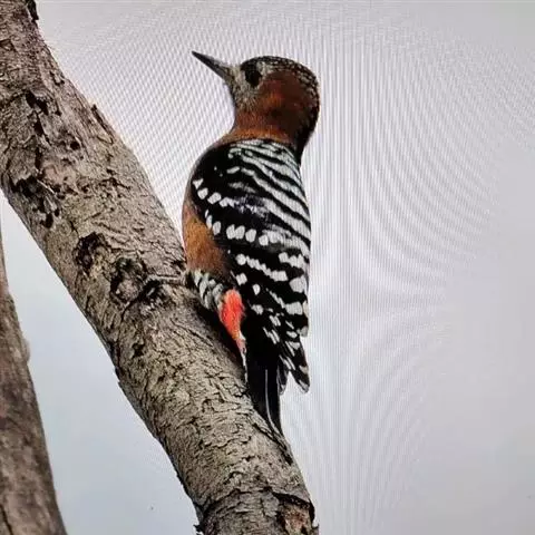 小星头啄木鸟(学名:Dendrocopos kizuki),是啄木鸟科、啄木鸟属的小型鸟类,体长12-17厘米,额、头顶至枕灰褐色,雄鸟枕两侧各有一深红色小纵斑;颊纹和眉纹白色,翕和颈侧具白斑,其余上体黑色,具白色横斑。翅黑色而具白色斑点。喉白色,其余下体污白色,具黑褐色纵纹。