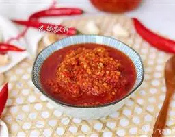 8.另准备少许蒜末,撒入盆中,油锅另备油,放入折断的干辣椒,下火炸至红棕色出香味,将辣椒油浇在蒜末上,顿时香味四溢。