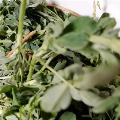 草架干燥法:草架主要是利用独木架、三角架、铁丝长架和棚架等。用草架干燥法时,首先将割下的苜蓿鲜草在地面干燥1-2天,使其含水量降至45%-50%,然后再用草叉将草上架,遇雨时不用干燥立即上架。堆放饲草时应自下而上逐层堆放,草层厚度最高不超过70-80厘米,最底层饲草应高出地面20-30厘米。堆放完毕后将草架两侧饲草整理平顺,雨水可沿其侧面流至地表,从而减少雨水进入草内。