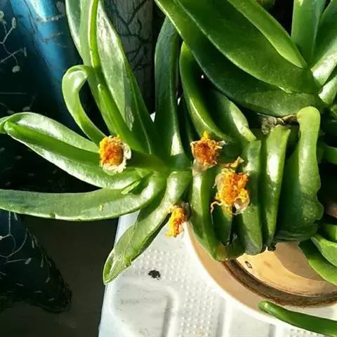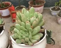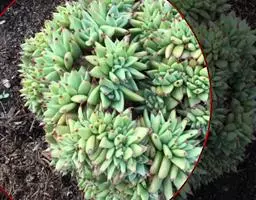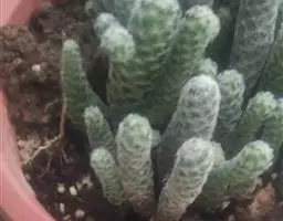 蓝黛莲是一种景天科厚叶草属植物。叶片呈略扁的圆柱形,排列成莲座状;颜色为灰绿色,…