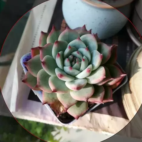 小红衣是景天科、拟石莲花属的一种多肉植物。叶片匙形,扁平细长,叶表具白粉,有明显的半透明边缘,…