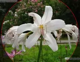 长筒石蒜草本,地生。鳞茎卵球形;叶披针形;伞形花序,有花5-7朵,花白色;花被裂片腹面稍有淡红色条纹,…