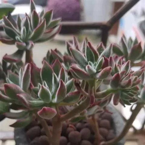 大和锦是景天科拟石莲花属的多肉植物。肉质叶排成紧密的莲座状,广卵形至散三角卵形,背面突起呈龙骨状,…