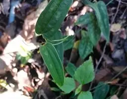 广东石斛:茎直立或斜立,细圆柱形,不分枝,具少数至多数节。叶革质,二列、数枚,互生于茎的上部,狭长…