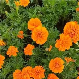 万寿菊是菊科万寿菊属一年生草本植物,别名孔雀菊、缎子花、臭菊花、西番菊、红黄草、小万寿菊、臭芙蓉、孔雀草。万寿菊茎近基部分枝。叶羽状分裂,长5-10厘米,宽4-8厘米,裂片长椭圆形或披针形,具锐齿,上部叶裂片齿端有长细芒,叶缘有少数腺体。头状花序单生,径5-8厘米,花序梗顶端棍棒状。总苞长1.8-2厘米,径1-1.5厘米,杯状,顶端具尖齿。舌状花黄或暗橙黄色,长2.9厘米,舌片倒卵形,长1.4厘米,基部成长爪,先端微弯缺。管状花花冠黄色,长约9毫米,冠檐5齿裂。瘦果线形,被微毛;冠毛有1-2长芒和2-3短而钝鳞片。花期7-9月。万寿菊中国各地均有栽培,在广东和云南南部、东南部已归化,国外原产墨西哥。万寿菊对土壤要求不严,但以肥沃疏松排水良好的土壤为好。耐移栽,种子发芽适温21-24℃,植株生长适合温度为20-29℃。喜温暖和阳光充足的环境,不