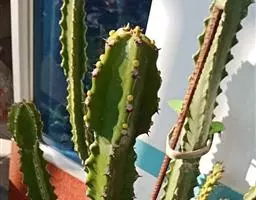 霸王鞭,是大戟科大戟属的多年生肉质灌木,全株含白色乳汁;茎直立,茎基部圆柱形,上部4~5纵棱,…