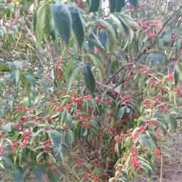 北京忍冬 选地:人工造林时应选择立地条件相对较好的荒山荒地,坡向为北或东北,因北京忍冬有一定的耐阴性,一般造林时不必大面积破坏原有的自然植被,减小造林投入。同时,又能最大限度地发挥单位面积内植被的整体水源涵养和水土保持的生态效益。北京忍冬造林生长几年后,冠幅在1.5-2米,因此,造林密度根据原有自然植被状况,参考3米×3米的株行距或密度更低一些,形成混交次生群落。
