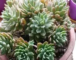 蓝石莲是景天科、拟石莲花属的多肉植物。茎部粗壮,成熟植株茎部木质化。叶片莲座型密集排列,株径不会很大,…