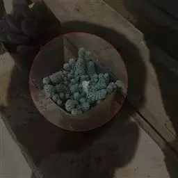 叶子表面宽厚,富肉质感且带有磨纱质感,看像石头质地;开红色小花,生于植株顶部,倒伞形密生,形状像花…