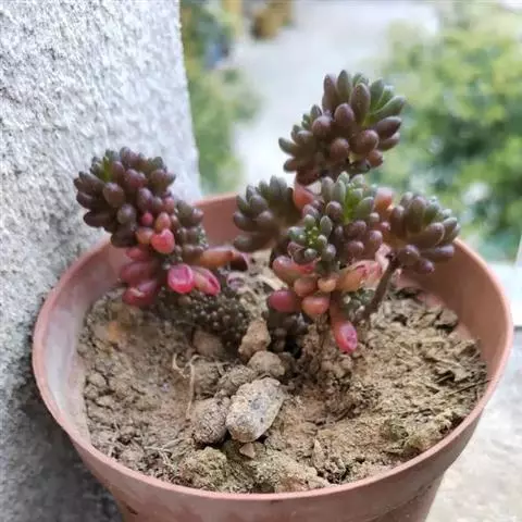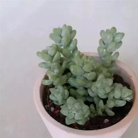 青星美人是景天科厚叶草属的多肉植物。开花时抽生出长长的花梗,簇状花序,红色花朵依次开放,呈倒钟形,…
