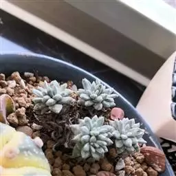 紫珍珠是景天科石莲花属的多年生肉质草本植物。植株中小型;叶片肉质,匙形,呈莲座状紧密排列;叶片粉紫色,…