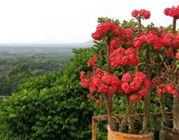 虎刺梅:别称铁海棠,是蔓生灌木植物。茎多分枝,长60-100厘米,直径5-10毫米,具纵棱,密生硬…