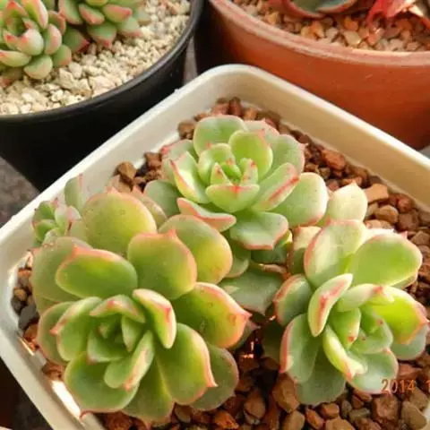 红边月影为景天科石莲花属多肉植物,在温差增大,光照增多时绿色的叶子会呈现边沿红色,非常好看!…