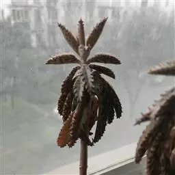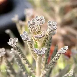 和其他兔耳一样,千兔耳叶子表面也是有一层软绒毛,摸起来很有手感,千兔耳的美,除了它的毛毛叶外,还有那非常对称整齐的对生叶,锯齿状的叶,有点萌萌白枫叶的即视感,整体跟人一种毛绒绒的可爱感。枝干易木质化,可通过断水来塑型。也有称白兔耳可开粉红色的花。大概因为其叶片多呈现白色,因此也有人误称为白兔耳,白兔耳的叶片会更像兔子耳朵的细长感,可以参照下图。相对来说,白兔耳会比较少见,价格也更贵点。