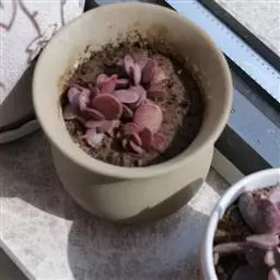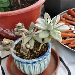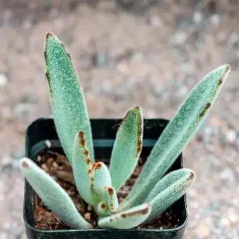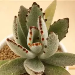 毛茸茸的毛、半边锯齿状的叶,缺口会再冒出小芽,夏型(冬眠),喜光照、可直晒、耐热(但要通风),适合春、秋。夏天要注意浇水不可过多,也不能太少。适合肥沃、排水性佳的沙土。很会长,可长到30公分左右,日晒不足会徒长春秋夏初是生长旺季