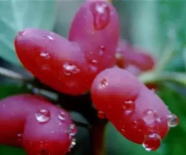 落叶灌木植物,果实四月下旬成熟,天然抗病, 杈杷果 果色红艳娇嫩透亮,晶莹剔透,鲜红如玉,果形为八字形分叉。单果重2.5g至5g左右左右,糖酸比高达39:1,果实矿质原素含量极高,钙、铁、磷、氨基酸含量均高于其它果品,比苹果高出24倍,铁的含量比桃高出5倍,磷的含量已是报道过的所有果品之最,味美爽口,中国农科院《作物品种资源》杂志曾作过介绍。四月下旬成熟,天然抗病,果色鲜亮,鲜红如玉,椭圆连体形。由于富含矿质原素高,具有非常好的保健美容效果,而且具有抗癌作用。