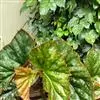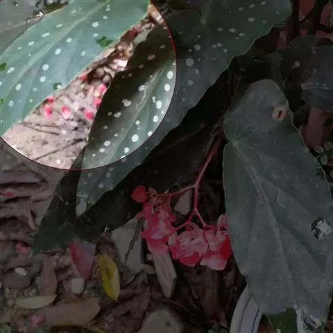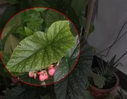 由漆斑菌引起的秋海棠叶斑病症状:病症一般出现在秋海棠叶片边缘、叶尖和破损叶片的叶脉上。坏死区域呈现黑褐色,然后是水渍状。诊断方法是下部的叶片经常会不规则形状的孢子群,中央呈黑色,但边缘为白色。