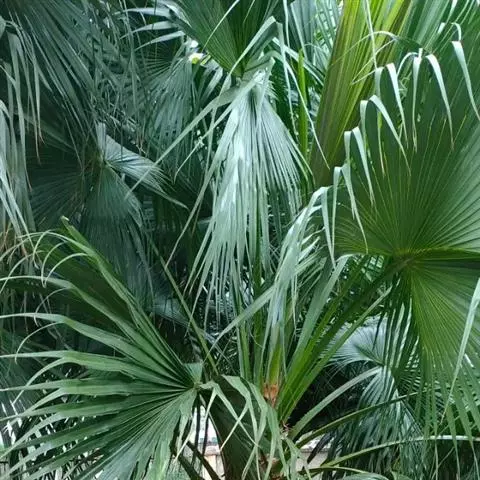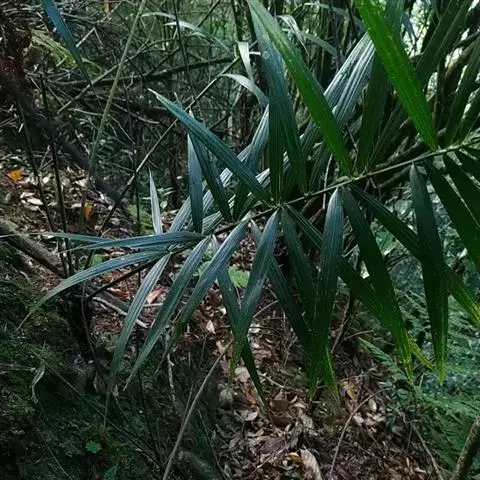 细叶棕竹,灌木,茎细如竹,多数聚生,有网状叶鞘。叶半圆形,掌状深裂,裂片狭长,阔线形,软垂,裂片7…
