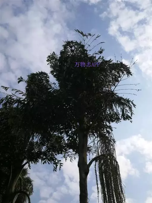 鱼尾葵(学名:Caryota ochlandra Hance )棕榈科、鱼尾葵属植物。乔木状,高10-15(-20)米,直径15-35厘米,茎绿色,被白色的毡状绒毛,具环状叶痕。茎干直立不分枝,叶大型,羽状二回羽状全裂,叶片厚,革质,大而粗壮,上部有不规则齿状缺刻,先端下垂,酷似鱼尾。花序最长的可达3米,花3朵簇生,花期7月,肉穗花序下垂,小花黄色。果球型,成熟后紫红色,果实、浆液与皮肤接触能导致皮肤瘙痒。