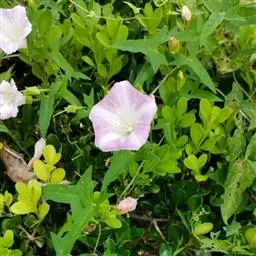 番薯 Lam.),多年生草质藤本植物,具有乳汁;其块根为白、红或黄色;茎生不定根;叶呈宽卵形或卵状心形,叶色有浓绿、黄绿、紫绿等,前端渐尖,基部呈心形或近平截;花冠为粉红、白、淡紫或紫色,呈钟状或漏斗状,无毛;蒴果呈卵形或扁圆形;由于番薯是于异花授粉,自花授粉常不结实,所以有时只见开花不见结果。 种子1-4粒,通常2粒,无毛。番薯原产于南美洲及大、小安的列斯群岛,现已广泛栽培在全世界的热带、亚热带地区,但在一些较北的地区如黑龙江省也已栽种成功,中国大多数地区都普遍栽培。番薯适应性强,喜温暖多光而不耐霜冻,抗旱耐碱,适种于肥沃而排水良好的砂质壤土,是一种易于保收的作物。番薯是一种高产而适应性强的粮食作物,在中国南方,有“一造番薯半年粮”的说法, 与工农业生产和人民生活关系密切;块根除作主粮外,也是食品加工、淀粉和酒精制造工业的重要原料;根、茎、叶可作