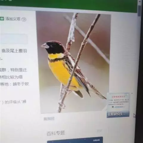 灰头鹀:属小型鸣禽。体重14-26克,体长125-161毫米。雄鸟嘴基、眼先、颊黑色,…