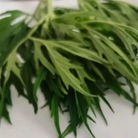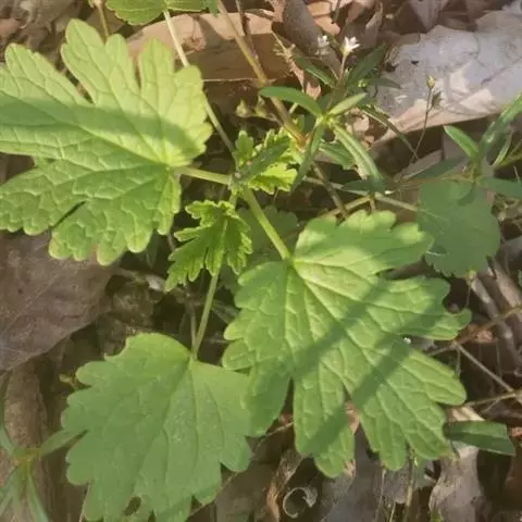 叶形变化很大,最下部茎叶心状圆形,长7-12厘米,宽6-9厘米,3裂,裂片上常有深缺刻,先端锐尖,基部心形,草质或坚纸质,上面绿色,下面淡绿色,两面均疏被短硬毛,侧脉3-6对,与侧脉在上面下陷,背面明显突出,叶柄长约2厘米;茎中部叶通常卵圆形,先端锐尖;花序上的苞叶变小,卵圆形或卵圆状披针形,先端长渐尖,边缘具不等大的锯齿,或为深裂,或近于全缘。