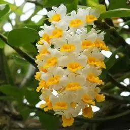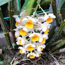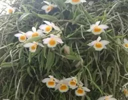 美花石斛是兰科石斛属多年生草本。茎柔弱,斜立或下垂,呈细圆柱形,有时分枝;叶互生于茎上,…