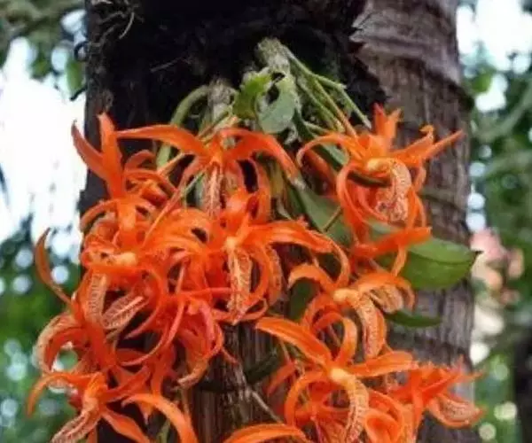 种名意思是“特别的、独特的”,指的是它的唇瓣,其唇瓣反转似犀牛角,布有深橙红色网纹,非常独特。这是个非常吸引人的小型种,目前已成为mini春石斛兰与非典型春石斛兰的重要亲本,虽然它没有饱满圆整的花型,但是花瓣橙红色与唇瓣上筋状网脉的遗传使得它异军突起,逐渐受到追捧。分布于越南、老挝、缅甸和泰国(海拔800-1550m),生长于低地森林的岩石和小灌木上。花期春季至初夏,花朵寿命长,可达1个月以上。