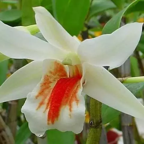 喉红石斛:附生。茎丛生,直立,粗短,近棒状纺锤体。叶2-4枚,生于茎顶。总状花序顶生,花序轴长5-…