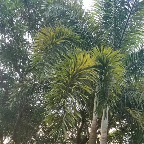 狐尾椰是棕榈科狐尾椰属的常绿乔木;木植高大通直,茎干单生,茎部光滑,有叶痕,…