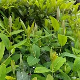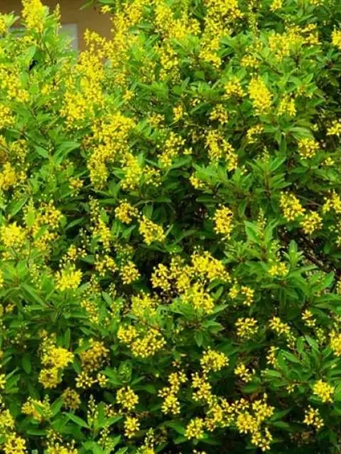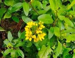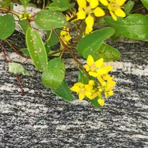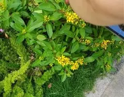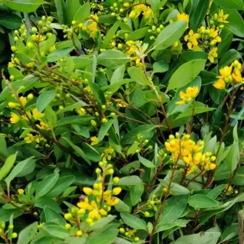 金英常绿灌木,株高约50-160厘米,嫩茎红色。叶片绿色,对生,椭圆形,先端尖,基部楔形,全缘。…